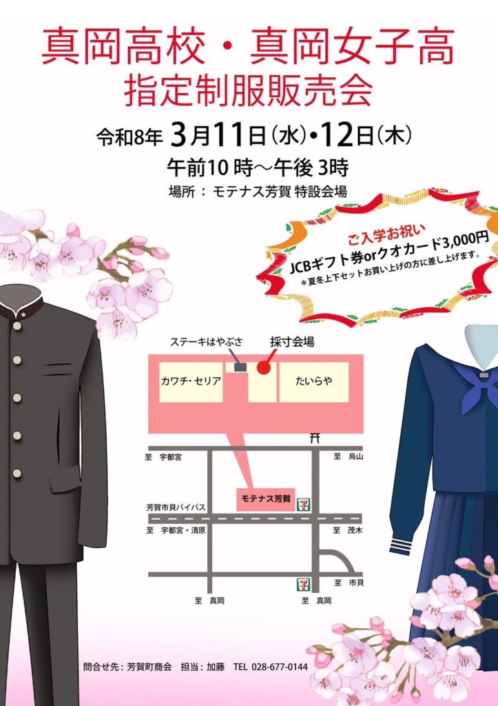真岡高校・真岡女子高校 指定制服販売会のご案内